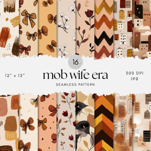 Add some flair to your designs with this set of Mob Wife Era Seamless Patterns! These high-resolution, tileable patterns are perfect for all kinds of creative work. Whether you’re designing fabric, wallpaper, packaging, or scrapbooking, these patterns will give your projects a polished, finished look.