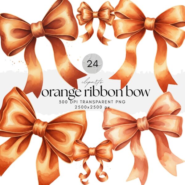 The 24 Orange Ribbon Bow ClipArt collection features high-resolution PNG images, offering elegant and versatile designs. Perfect for projects like invitations, scrapbooking, social media, and printables, these orange ribbon bows fit a variety of creative needs. Ideal for fashion, gifts, or celebration-themed designs.
