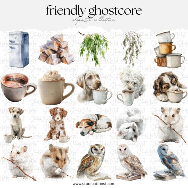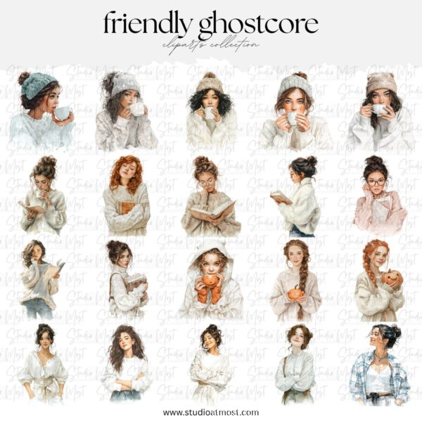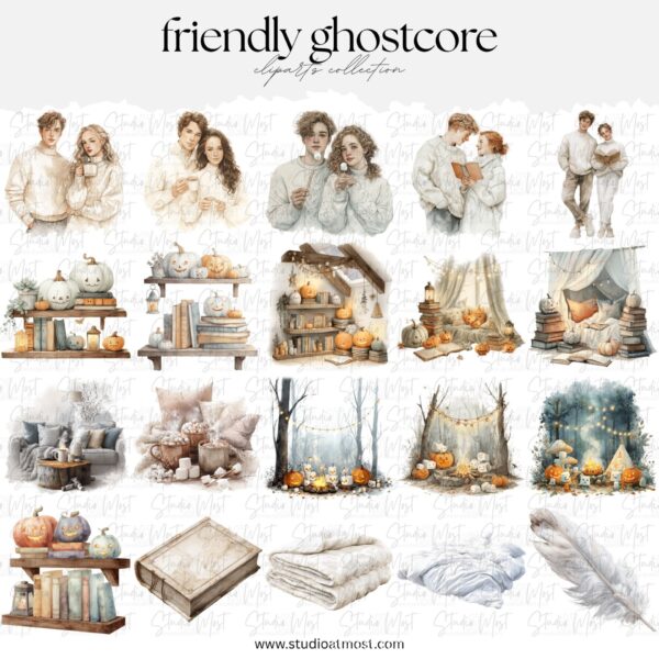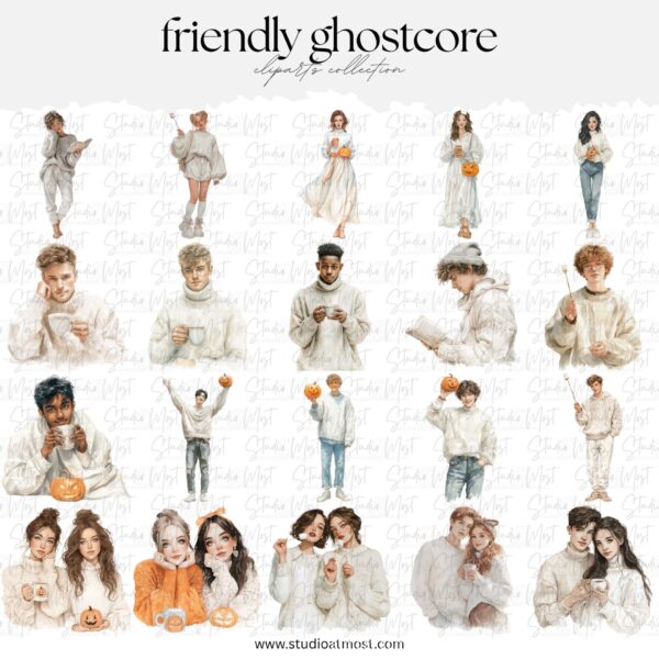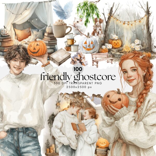 Discover our 168 Watercolor Friendly Ghostcore Bundle Collections. With people, décor, and objects in high-resolution PNG files. Perfect for invitations, branding, social media graphics, scrapbooking, printables, and more.