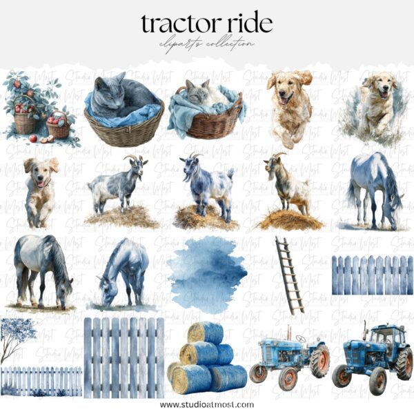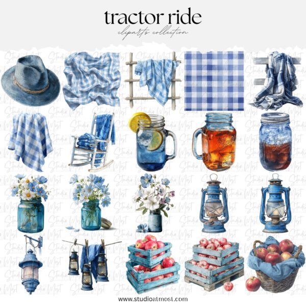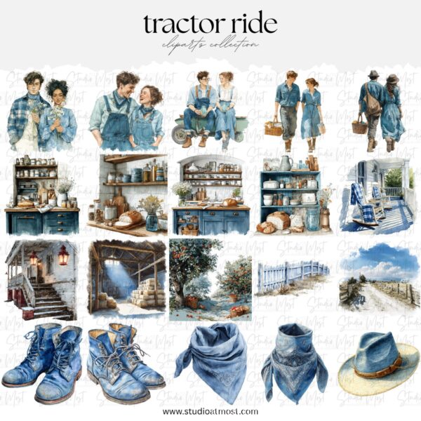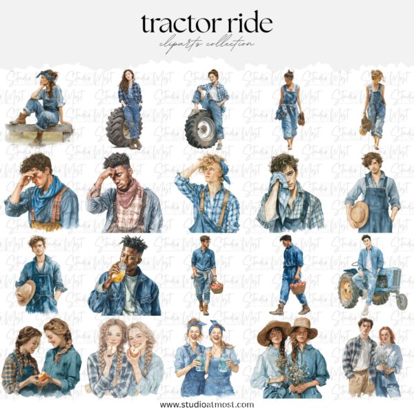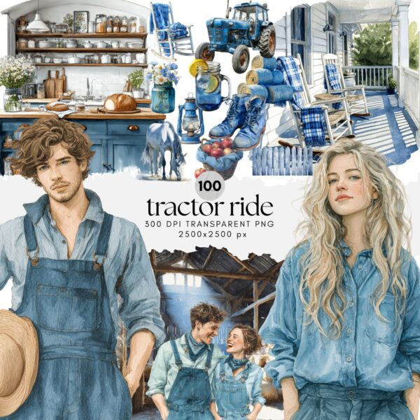 Discover our 100 Watercolor Tractor Ride ClipArt collection. With people, décor, and objects in high-resolution PNG files. Perfect for invitations, branding, social media graphics, scrapbooking, printables, and more.